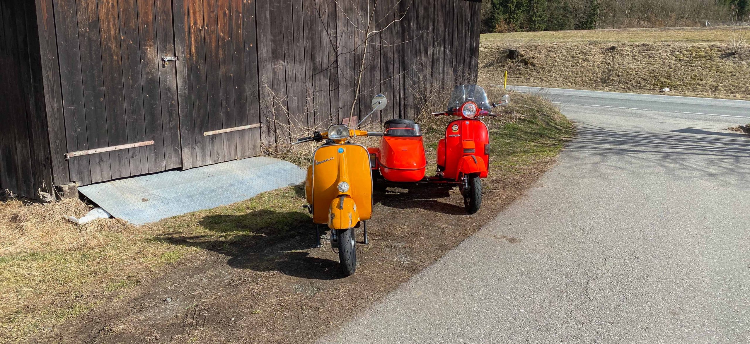 Ich habe ja, letzten Herbst einen Lenkungsdämpfer  verbaut am Beiwagen, heute hatte ich endlich Zeit und das nötige Wetter für eine ausgiebige Testfahrt, begleitet von Heinzi.